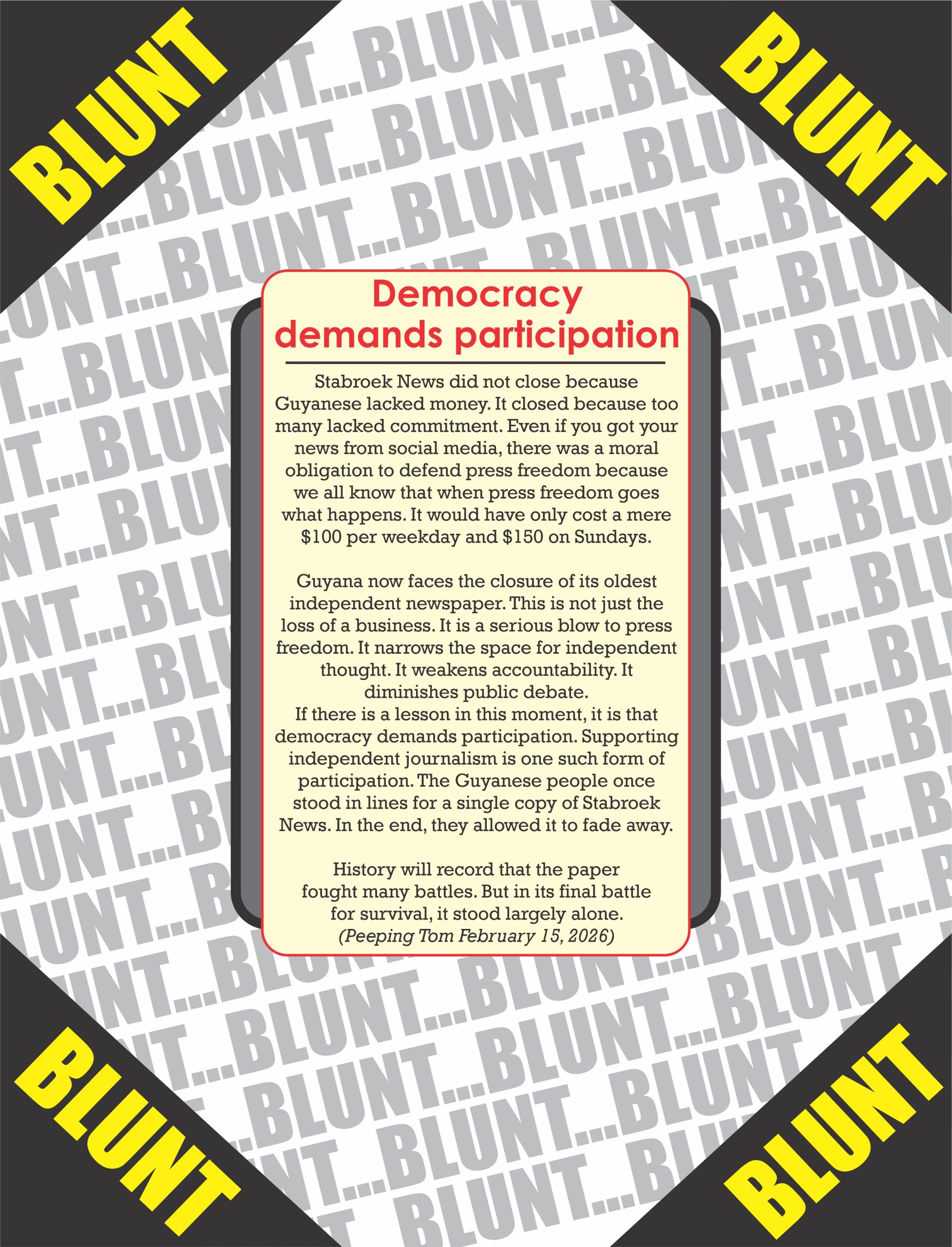 Dear Editor, A life-sized cardboard cutout of David Granger was used during the elections campaign; it allowed APNU+AFC supporters to take a picture with their leader. Five months after losing those...Jul 31, 2020 KNews Letters Comments Off on We need competent leadership in transitioning into necessary new technology