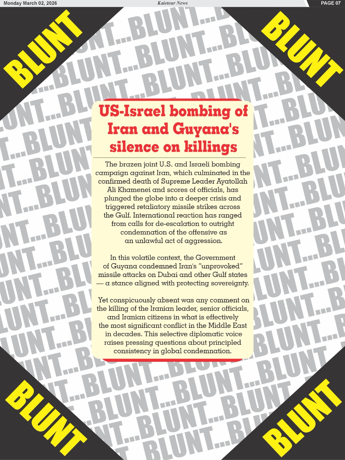 (Kaieteur News) – In the autumn of 1983, the America found itself staring at a crater in the sands of Beirut. Two hundred and forty-one marines lay dead beneath the rubble of a barracks blown open by a truck bomb. The images flickered across the television screens like a bad dream. The pageant...Mar 01, 2026